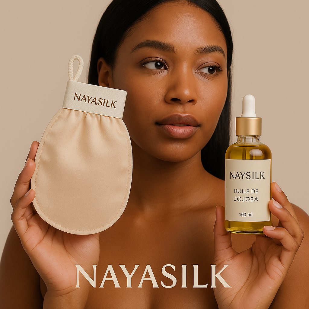 Offrez à votre peau un moment de soin complet avec le coffret "Rituel Peau de Soie" signé NayaSilk. Le gant en soie exfolie en profondeur, booste la circulation et révèle l’éclat de la peau. L’huile de jojoba, riche et fine, nourrit et apaise immédiatement après.